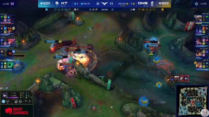 第三局中期DNS一度利用更强势的上中野强开能力,将经济甚至小小反超过KT,但随着雷克塞的成型,以及后期厄斐琉斯的高伤害,KT还是以更强的阵容赢团获胜。