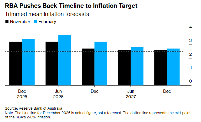 澳洲联储上周成为今年全球首个加息的主要央行,与政策决议同步公布的最新经济预测显示,未来数月至少还会加息一次。目前该行预计,今年整体通胀与核心通胀均将突破2%–3%的目标区间上限。