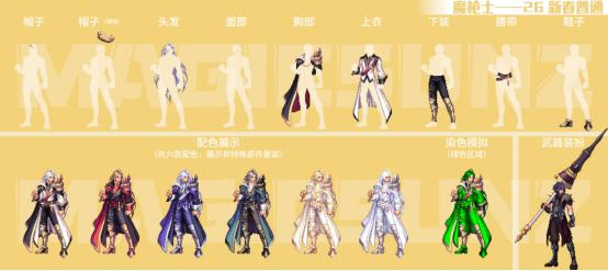 看到单件,发型是中长款“泡面头”自带一定的华贵或颓气属性,是不错的风格散搭件;面妆有一定的眉眼刻画,相较于角色基础面部点阵而言,有很明确的妆造作用;胸部是“皇帝”牌要素表达最明确的王冠单侧披风,造型很帅气,刻画精致,与腰部装扮共同构成该套装的核心外层装饰;上衣、下装、鞋组成内层贴身铠装,设计与配色使用上会比较仿古,仅部分区域可染色。