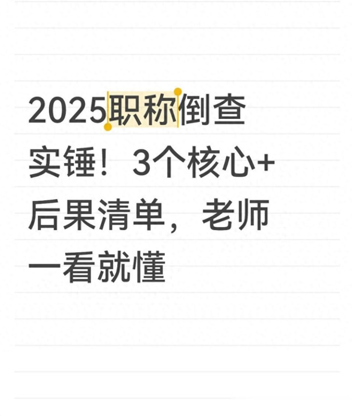 最后再提2个醒:别信“花钱摆平核查”的谣言,新规是常态化监管,走关系只会更麻烦;不用盲目焦虑,倒查淘汰的是违规者,反而让评审更公平。只要你材料真实、师德过硬、流程合规,就安心专注教学,完全不用怕核查。