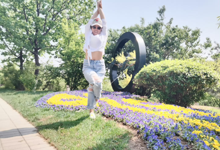 当时哥哥和团里其他人在抽烟聊天呢,他自己出去转了一下,一出院子就看见了她穿着连体短裤在院子里和其他演员的小孩在跳皮筋,青春洋溢,忍不住多看了两眼。
